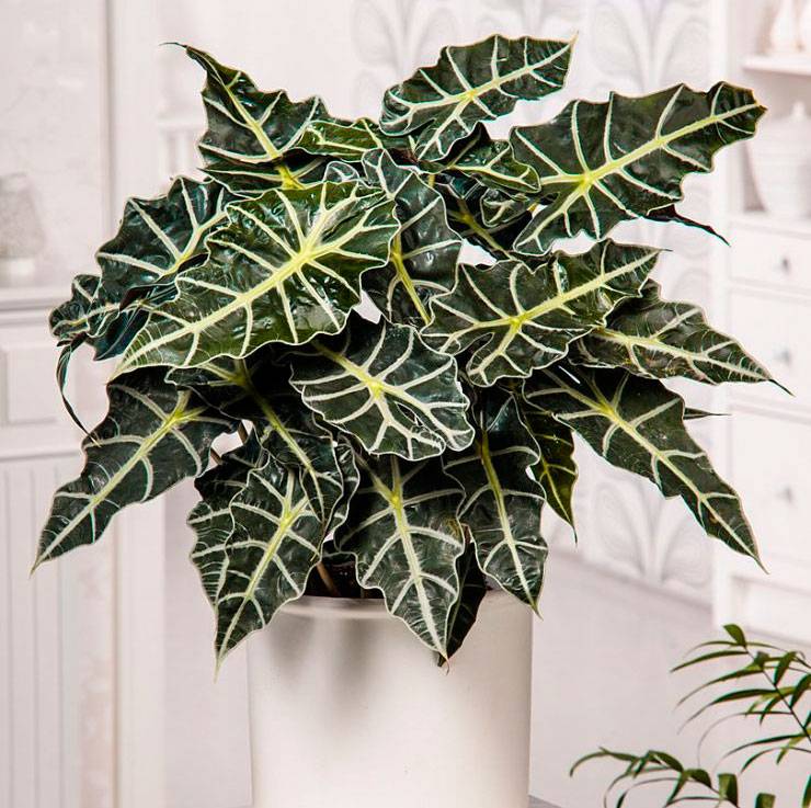 Thuis voor Polly's alocasia zorgen is niet moeilijk. De plant hoeft geen specifieke voorwaarden te creëren.