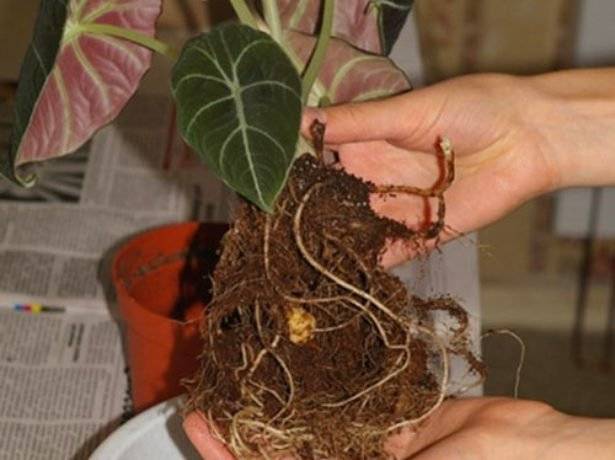 Alocasia-transplantatie
