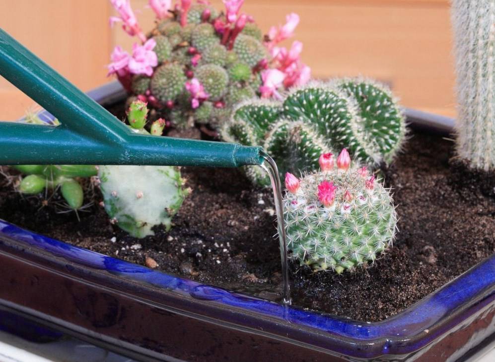 Cactusaarde kan zelfgemaakt zijn of in de winkel worden gekocht. Je moet de cactus niet diep planten, een deel van de wortelhals moet zichtbaar zijn.