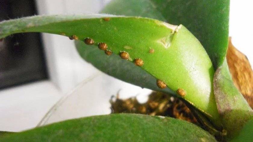 Als er donkere gezwellen op de bladeren begonnen te verschijnen, betekent dit dat de plant werd aangevallen door een schaalinsect. Jongeren zijn alleen te zien met vergrootinstrumenten. U kunt ongedierte verwijderen met phytoverm of actellik. Herhaal de verwerkingsprocedure is vereist in een week.