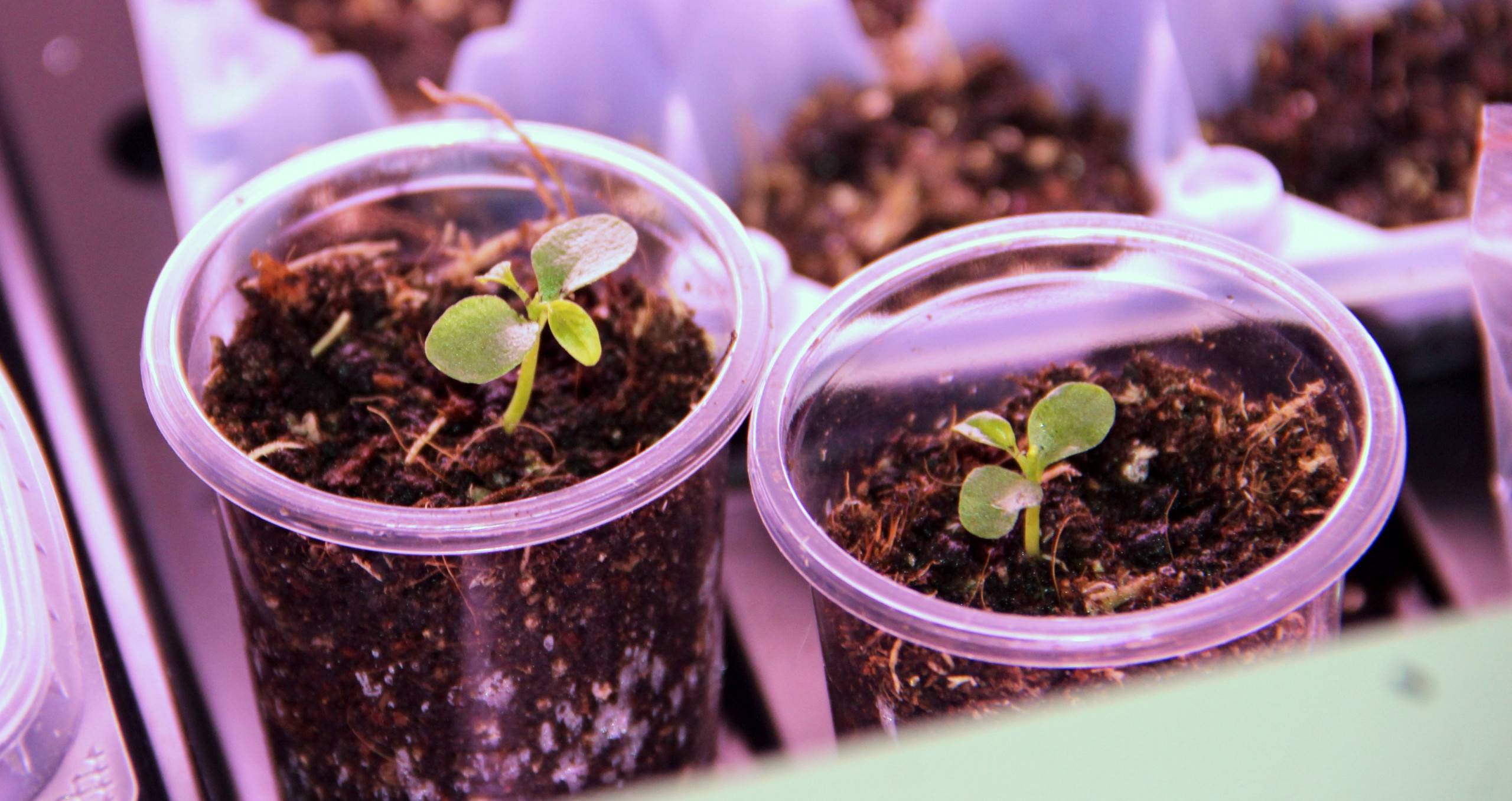 - De telg wordt vervolgens besproeid en bedekt met bijvoorbeeld een gesneden plastic container.