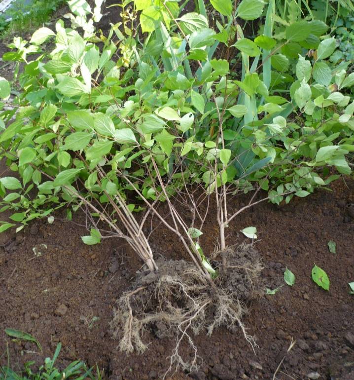 - het is raadzaam om de struik onmiddellijk op de dag van het opgraven te transplanteren om uitdroging van de wortelstok te voorkomen;