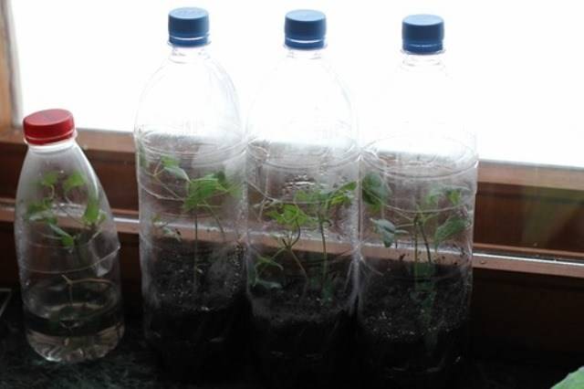 De fles met stekken wordt op een schaduwrijke plek geplaatst. Begin na 2-3 weken met luchten door het deksel te openen. Als er jonge scheuten verschijnen, wordt de bovenkant van de fles verwijderd.