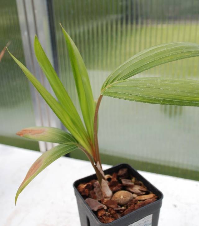 Семената се засаждат едно по едно, като леко се задълбочават и отгоре се поръсват със земя. За да се създадат парникови условия, контейнерът е покрит отгоре със стъкло или прозрачен филм. Ако всичко е направено правилно, тогава първите разсад може да се появят след шест месеца, след което те се засаждат в отделни контейнери.