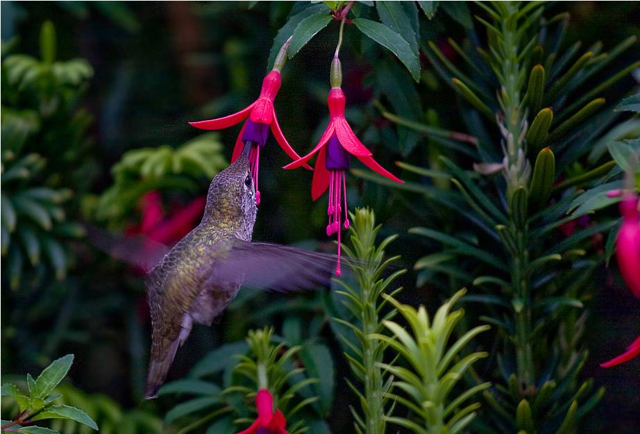 Fuchsia nu tolerează căldura și aerul uscat, așa că vara planta se pulverizează periodic cu apă așezată chiar sub temperatura camerei. În zilele deosebit de fierbinți, floarea trebuie pulverizată atât dimineața, cât și seara.
