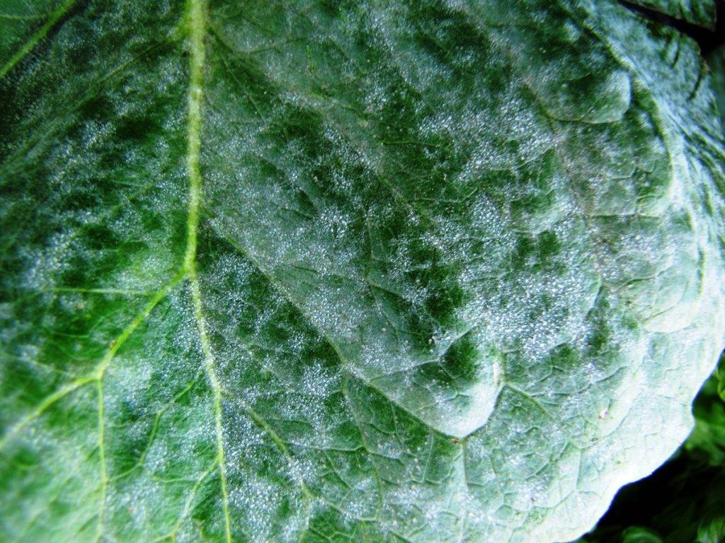 Făinarea apare după fluctuații puternice de temperatură zi și noapte. O diferență de 10 grade este suficientă. Ciuperca se manifestă destul de clar - pe frunze se formează zone albe, care seamănă în exterior cu pudra de făină. În timp, placa frunzelor începe să se deformeze și moare complet.