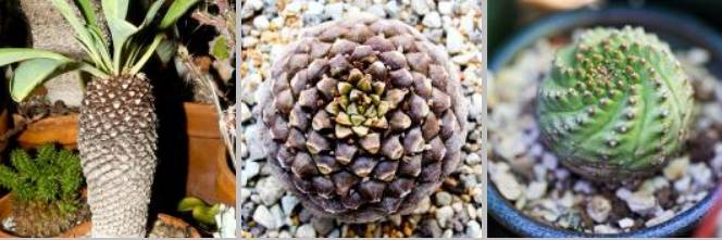 - Euphorbia canariensis (Канарски) - в природата може да достигне 12 м височина, оребрените му стъбла са осеяни с кафяви бодли, чувства се добре на добре осветена перваза на прозореца.