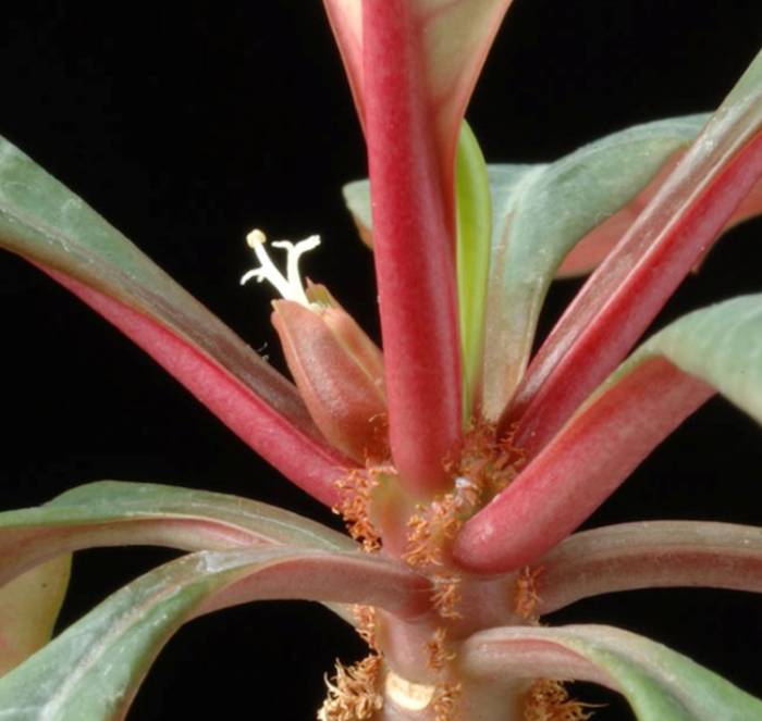 Как изглежда еуфорбията, към кое семейство принадлежи?