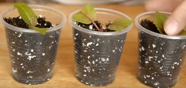 ขั้นแรกให้วางการระบายน้ำเพื่อหลีกเลี่ยงความชื้นส่วนเกินโดยมีชั้น 1.5 ซม. จากนั้นจะถูกปกคลุมด้วยดินด้านบน ถ้วยที่มีหน่อวางอยู่ในภาชนะขนาดใหญ่