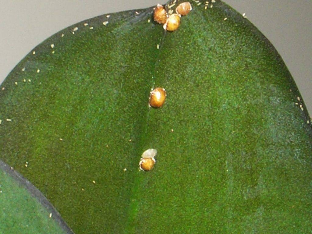 ใบไม้สามารถร่วงหล่นและเปลี่ยนเป็นสีเหลืองได้หากพืชได้รับผลกระทบจากศัตรูพืช โดยปกติจะเป็นเพลี้ยไรเดอร์แมลงเกล็ดไส้เดือนฝอย หากพบสัญญาณของการโจมตีของศัตรูพืชบนกล้วยไม้ควรได้รับการรักษาโดยเร็วที่สุด ที่บ้านสามารถทำได้โดยใช้ยาฆ่าแมลง