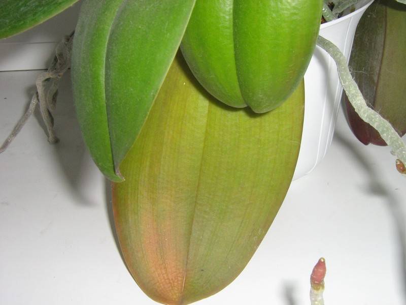 อุณหภูมิของอากาศที่เพิ่มขึ้นนำไปสู่ความอดอยากทางอากาศการขาดแคลนสารอาหารอย่างเฉียบพลัน ไม่ยากที่จะแก้ไขสถานการณ์คุณควรย้ายกล้วยไม้ไปยังที่เย็นระบายอากาศในห้องให้บ่อยขึ้น ใบไม้จะกลับมามีสีตามปกติอย่างรวดเร็วและดูมีสุขภาพดี