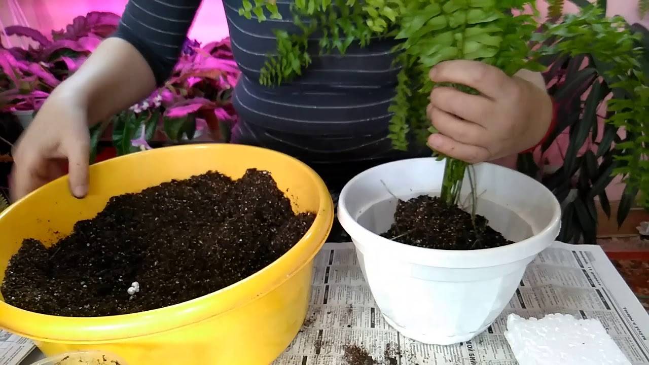 เฟิร์นซึ่งถือเป็นเฟิร์นในร่มมีการปลูกถ่ายทุกปี ขั้นตอนนี้จำเป็นเนื่องจากระบบรากของพืชเจริญเติบโตอย่างรวดเร็ว นอกจากนี้ดินเองก็หมดลงอันเป็นผลมาจากการเจริญเติบโตของส่วนเหนือดิน