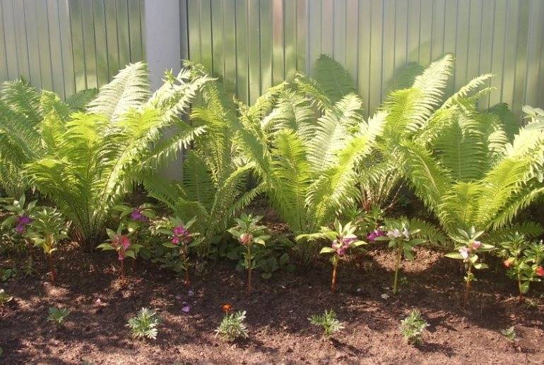 พุ่มไม้ถูกวางไว้ในหลุมเติมน้ำขึ้นไปด้านบนจากนั้นดินจะเทลงในน้ำโดยตรง ในอนาคตเฟิร์นจะถูกเลี้ยงด้วยปุ๋ยอินทรีย์