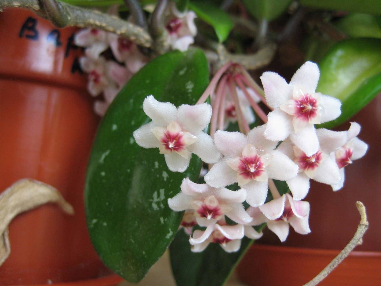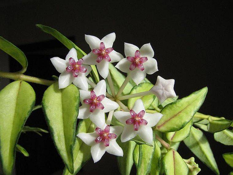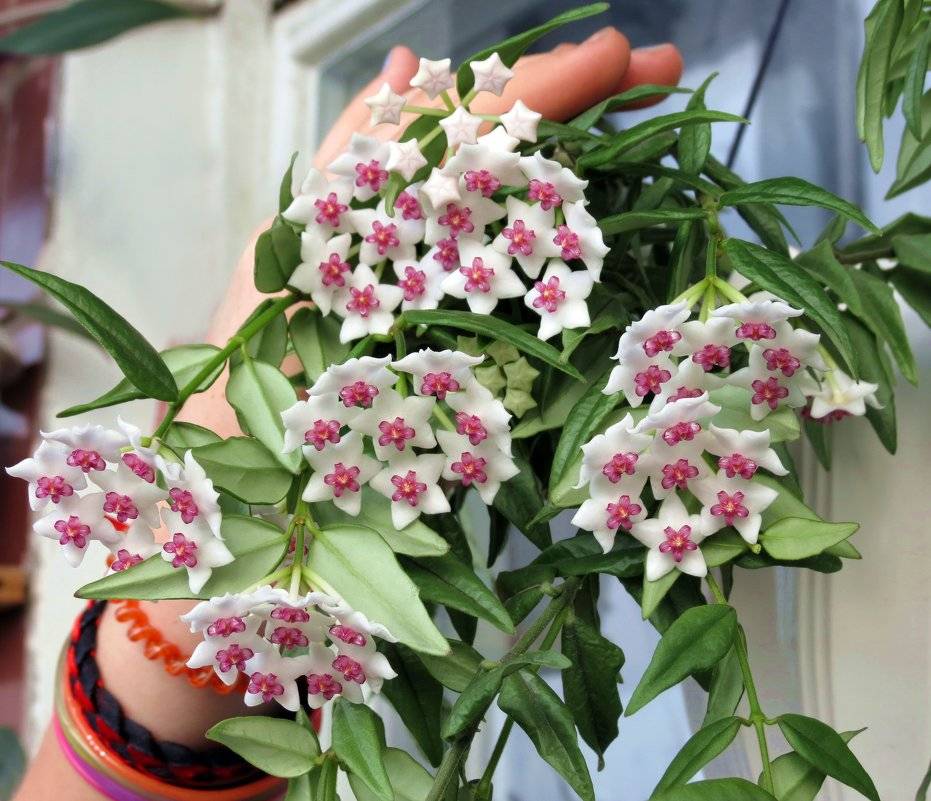 ที่บ้านเป็นเรื่องปกติที่จะปลูกพืชสองชนิดคือโฮย่าเนื้อ (Hoya Carnosa) และโฮย่าที่สวยงาม (Hoya Bella) ที่พบมากที่สุดคือพืชชนิดแรกซึ่งมีความยาวถึง 6 ม. ดอกไม้ถูกปกคลุมอย่างหนาแน่นด้วยใบที่แหลมคมต่อเนื่องกัน ดอกไม้มีสีขาวเป็นรูปดาวเก็บในช่อดอก
