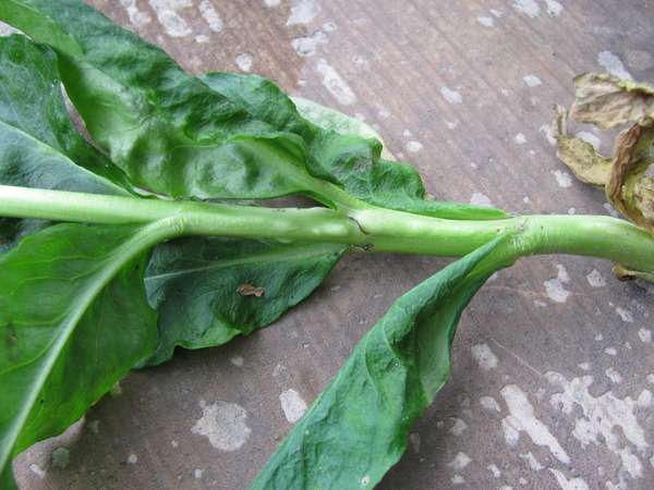 รอยแตกในแนวตั้งที่โคนต้นเป็นสัญญาณของปัญหาดังกล่าว ในขณะที่พัฒนาขึ้นชิ้นส่วนภายในจะถูกเปิดออกและก้านจะมีรูปร่างแบน ความยาวของรอยแตกมักจะอยู่ที่ 10-15 ซม.