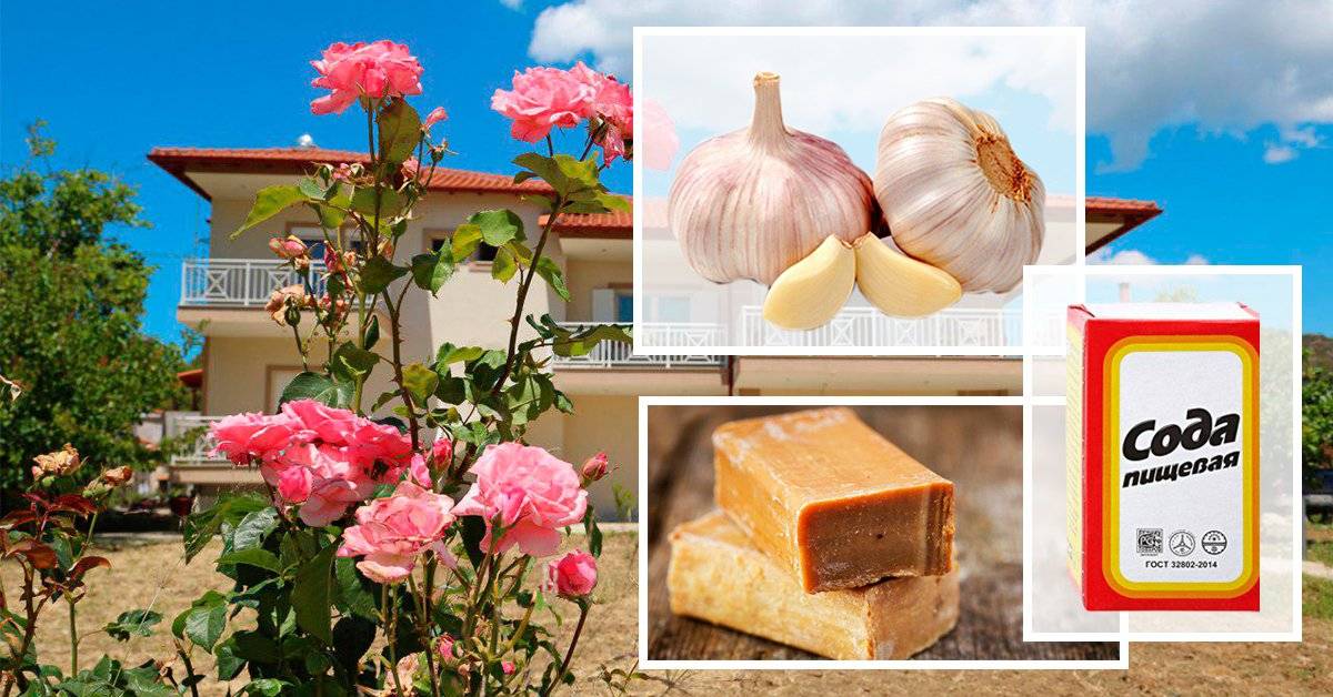 - กระเทียม. กระเทียมบดประมาณ 500 กรัมแล้วเติมน้ำ 10 ลิตร ส่วนผสมของกระเทียมถูกผสมเป็นเวลา 24 ชั่วโมงและใช้ในการฉีดพ่นกุหลาบและต้นสน
