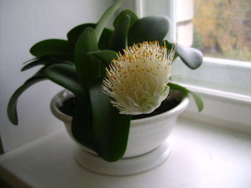 ประเภทที่พบบ่อยที่สุด มีดอกปุยสีขาวและใบอ้วนขอบหยัก การออกดอกเกิดขึ้นในช่วงฤดูใบไม้ร่วง - ฤดูหนาว บนพื้นฐานของสายพันธุ์นี้พันธุ์ผสมของ hemantus ส่วนใหญ่ได้รับการผสมพันธุ์