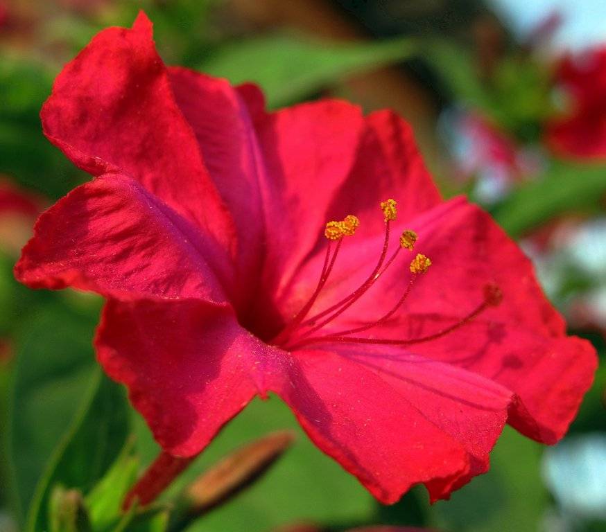 ไม้ยืนต้นดอกสีแดงมีกลิ่นหอมเส้นผ่านศูนย์กลางประมาณ 6 ซม. ก้านช่อเปิดหลัง 15.00 น. และปิดด้วยแสงแรกของดวงอาทิตย์ พุ่มไม้เติบโตสูงถึง 80 ซม. ลำต้นแตกกิ่งก้านและตั้งตรง การออกดอกมีมากและยาวนานตั้งแต่ต้นเดือนมิถุนายนถึงน้ำค้างแข็ง