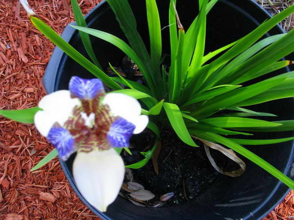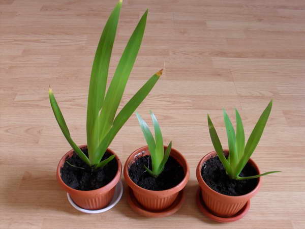 ควรใช้กระถางดินเผาที่ไม่สูงเนื่องจากรากของไอริสอยู่ที่ส่วนบนของดิน ที่ด้านล่างของหม้อระบายน้ำจะมีชั้นของดินเหนียวที่ขยายตัวแล้วจึงใส่ดินที่เตรียมไว้