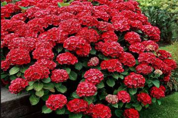 ไฮเดรนเยียสีแดงใบใหญ่คะนองงาม