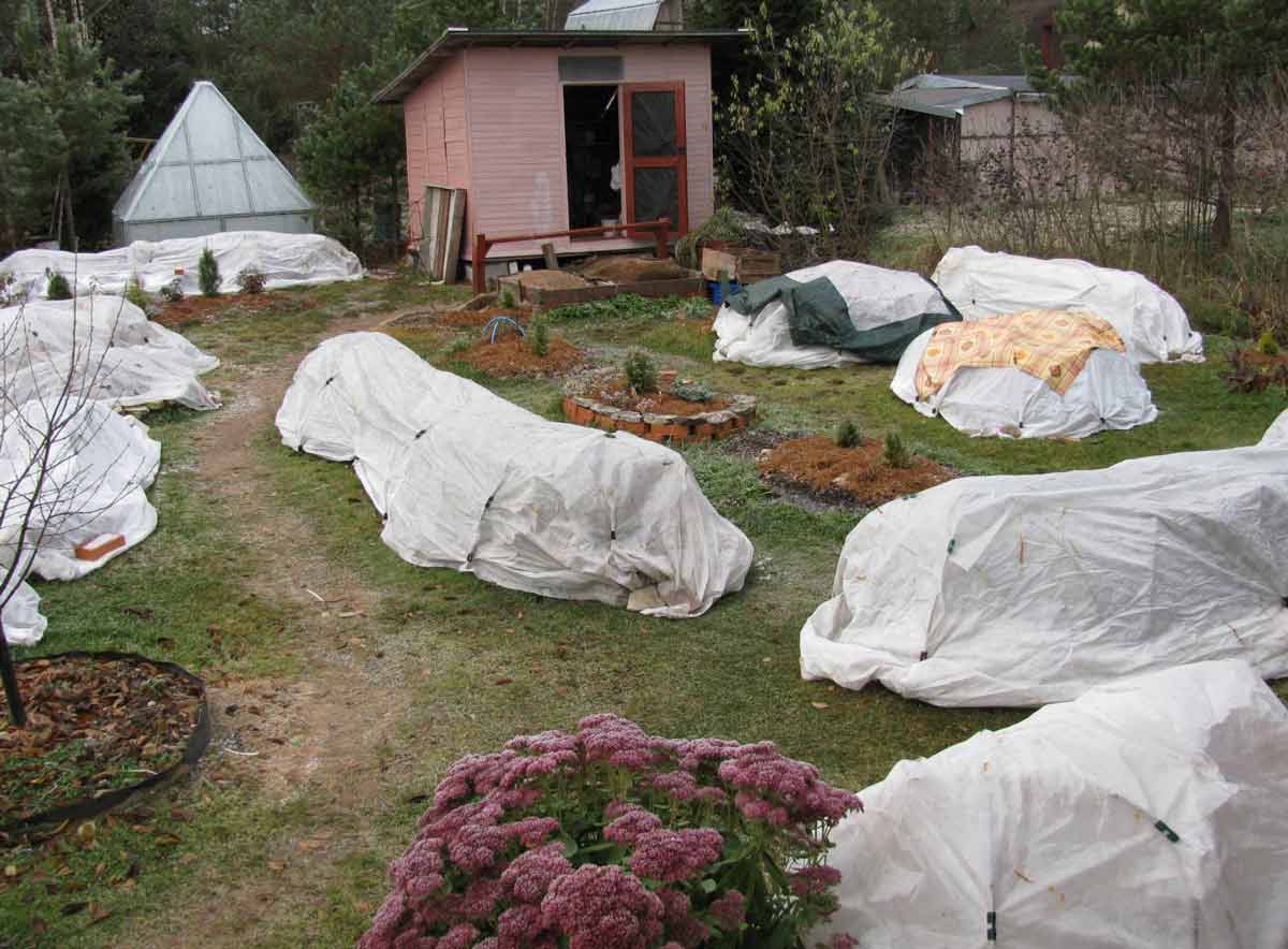 เมื่อเร็ว ๆ นี้ที่พักพิงแบบแห้งกำลังได้รับความนิยม - การสร้างกรอบรอบดอกไม้จากส่วนโค้งหรือกระดานโลหะซึ่งมีการดึงวัสดุพิเศษ (ผ้าสปันบอนด์ผ้าใยสังเคราะห์ ฯลฯ ) นอกจากนี้ยังห่อด้วยพุ่มไม้เพื่อเป็นฉนวน