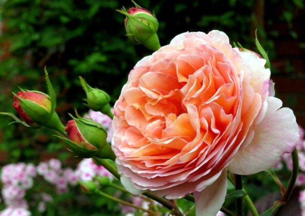 Rose Abraham Derby (Abraham Darby) - คำอธิบายของดอกไม้นานาพันธุ์