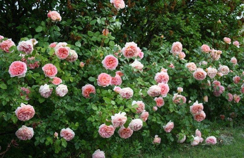 พันธุ์นี้บุปผาเกือบต่อเนื่อง พุ่มไม้ในเวลานี้ถูกปกคลุมไปด้วยดอกเดี่ยวแอปริคอท - พีชขนาดใหญ่จำนวนมาก