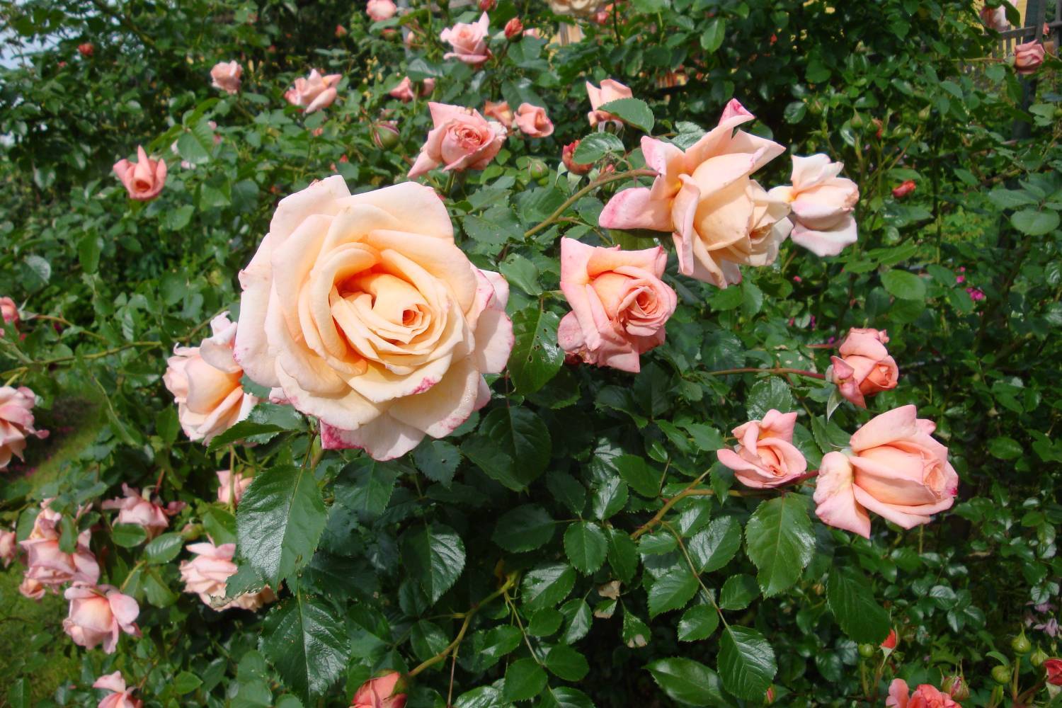 หน่อยาวได้ถึง 1.5-2 ม. พุ่มไม้ไม่แผ่กว้างมากใช้เวลาไม่เกิน 1 ม. จำนวนหนามอยู่ในระดับปานกลาง ใบมีสีเขียวเงามันวาวและเขียวชอุ่ม หน่อเกิดขึ้นตามความยาวทั้งหมดของหน่อโดยรวมกันเป็นกลุ่ม 3-5 ชิ้น