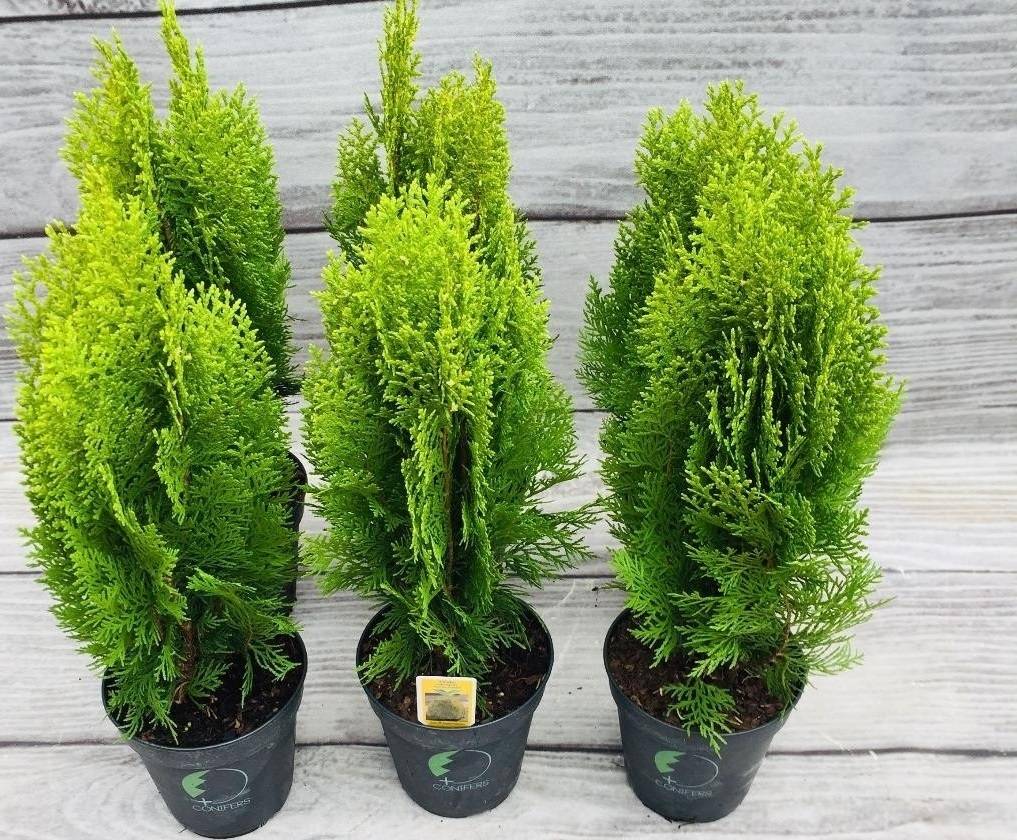 Thuja (ออเรียนานา) ออเรียนานาเป็นไม้สนในสวนที่มีความสูงได้ถึง 3 เมตร มีมงกุฎรูปไข่กว้าง เส้นผ่านศูนย์กลางของพุ่มไม้อาจสูงถึง 1 เมตร เข็มสีเขียวอ่อนในรูปแบบของเกล็ดเล็ก ๆ เติบโตบนลำต้นที่มีกิ่งก้านหนาแน่นซึ่งมีสีเหลืองเข้ม บ้านเกิดของต้นไม้ขนาดกะทัดรัดถือได้ว่าอยู่ทางตะวันตกเฉียงเหนือของประเทศจีน พืชชนิดนี้มีสองพันธุ์ ได้แก่ ทูจาเวสเทิร์นออเรียนานาและทูจาอีสเทิร์นออเรียนานา อย่างไรก็ตามแทบจะเป็นไปไม่ได้เลยที่จะแยกแยะออกจากกันภายนอก