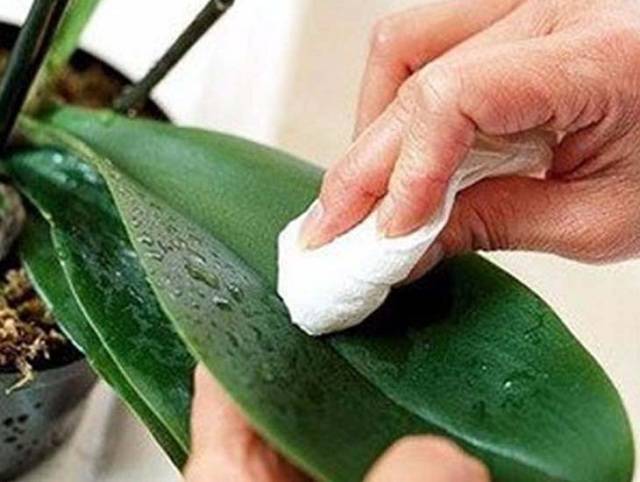 - bitkinin tüm yeşil alanları her gün sabunlu suya veya temiz suya batırılmış ıslak bir pamuklu ped ile yıkanır: yukarıdan ve aşağıdan, her iki yaprak, pedinküller ve gövde;