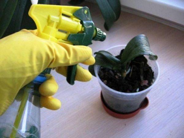 - orkide, ikinci bir hastalığı dışlamak için toprağın tamamen değiştirilmesiyle yeni bir tencereye nakledilir;