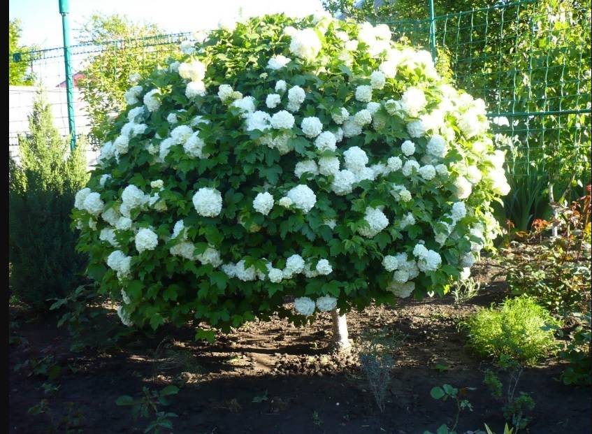 Често в ландшафтния дизайн се използва храст с булдозер. Цветята са много красиви бели топки без мирис, а самият храст не дава плодове. И въпреки че градинарите смятат buldenezh за капризно растение, те го засаждат с удоволствие, тъй като грижите са прости и не отнемат много време.