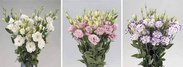 - Florida Pink. Достига 20-25 см. Отглежда се като саксийно растение. Тази еустома разтваря розови цветя с малък размер, 4-5 см в обиколка, отворени последователно;