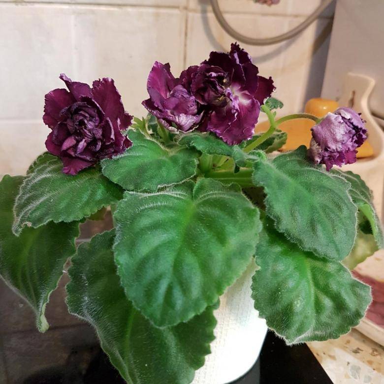 Тази закрита Сенполия има листенца с невероятна красота. Те могат да имат нежен сливов или бял оттенък и се събират в буйни кадифени пъпки. Листата по стъблата имат закръглена форма във формата на сърце и на допир от горната страна са хавлиени.