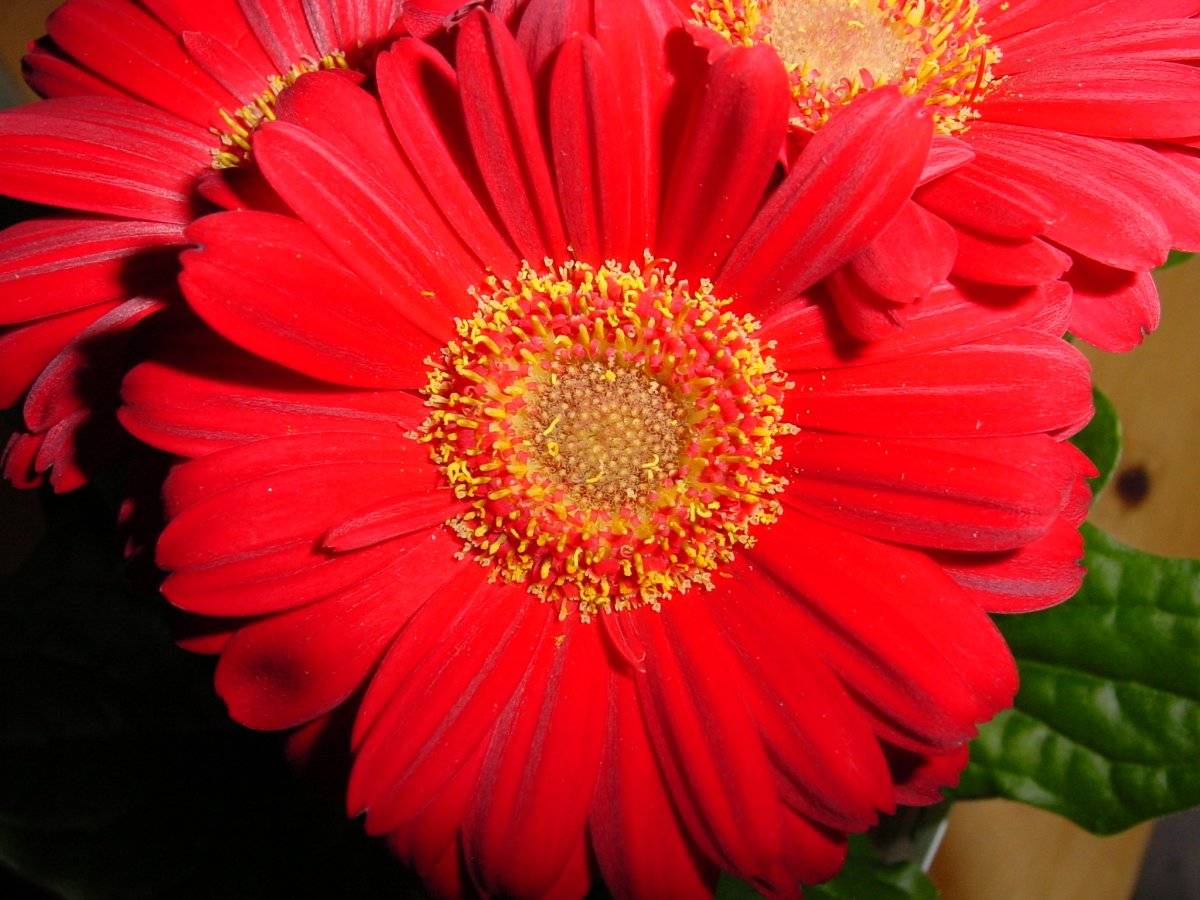 - Цветето е с форма на лайка. Има прости, двойни и полу-двойни гербери. Диаметър - от 10 см. Цветът на венчелистчетата може да бъде бял, розов, жълт или червен. Сърцевината винаги е кафява.