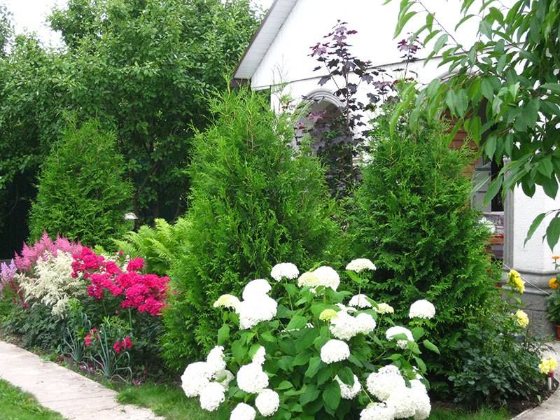 Хортензии в ландшафтния дизайн - с кои растения се комбинират в цветна леха