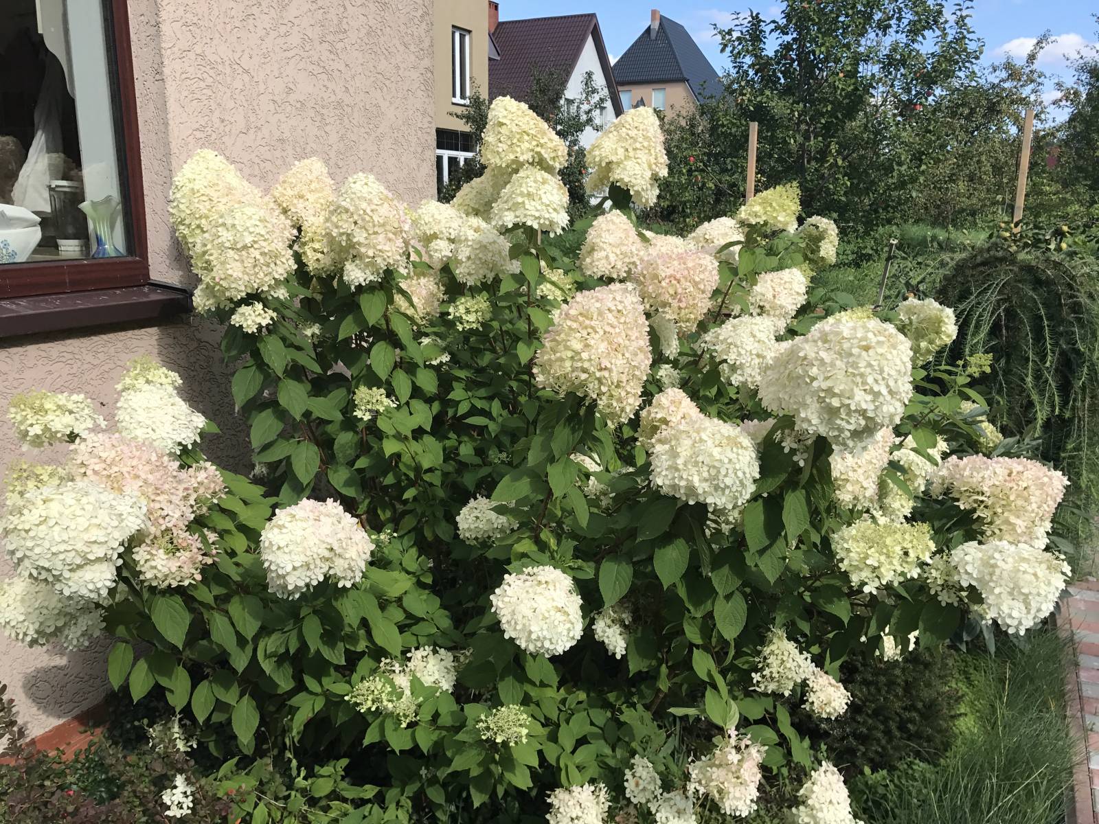 Вълшебните храсти на хортензия на метлицата на лунна светлина растат големи, така че не е необходимо да се засаждат близо един до друг и сгради.