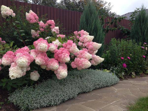 Хортензията изглежда страхотно както при единични, така и при групови насаждения. Растението не е капризно, следователно грижите за него не са трудни, което е голям плюс за начинаещи градинари.