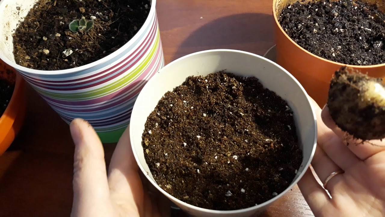 Неразделна част от грижите за растенията е трансплантацията, докато клубените растат.Ако размерът на клубените все още е миниатюрен, тогава можете дори да използвате обикновени пластмасови чаши. За средно големи цветя се препоръчва да се използва съд с диаметър 7-11 см, за възрастни - 10-15 см. Важно е саксиите да са сравнително дълбоки и широки. Пластмасови и глинени саксии ще свършат работа, но производителите са по-склонни да препоръчат първия вариант.