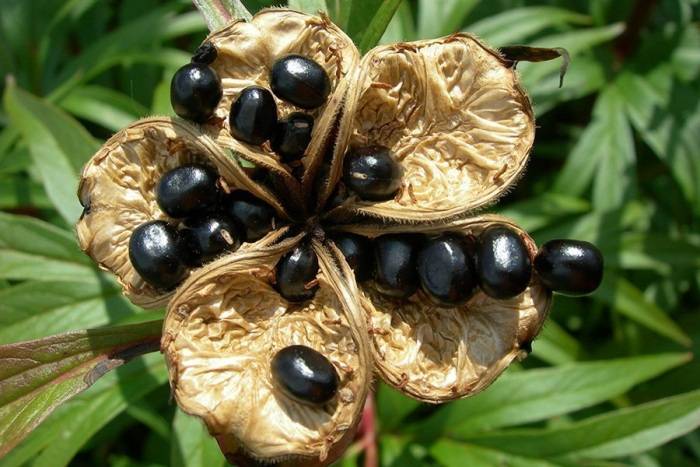 Събирането на семена се извършва, когато кутията за семена на божур узрее и се напука, някъде в края на август.