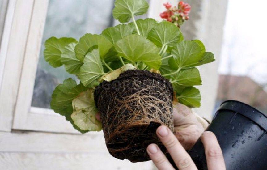 Изборът на саксия за цветя се изисква в зависимост от размера на кореновата система на растението. Мушкатото започва да реагира на липсата на пространство чрез пожълтяване на листата. Това се дължи на факта, че в почвата има не само недостатъчно хранителни вещества, но и въздух за цветето.