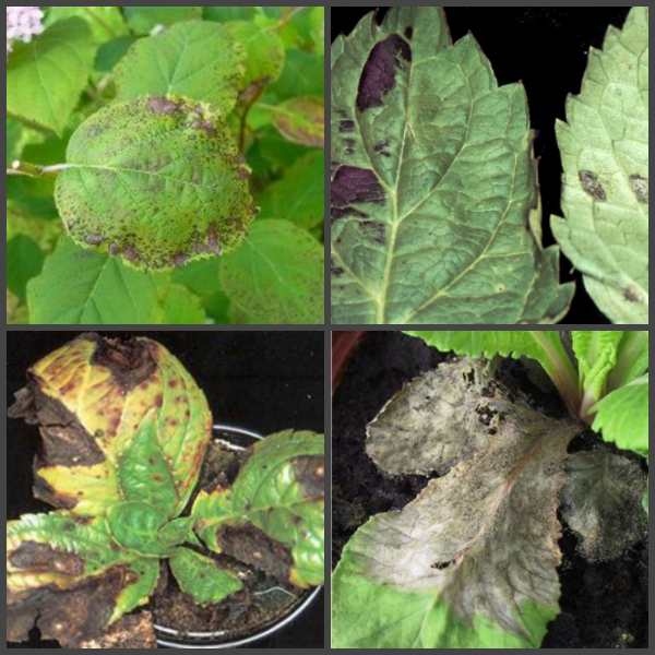 Всеки едролистен сорт е особено податлив на гъбични заболявания. Следователно, ако листата на хортензията са свити, тогава причината може да е:
