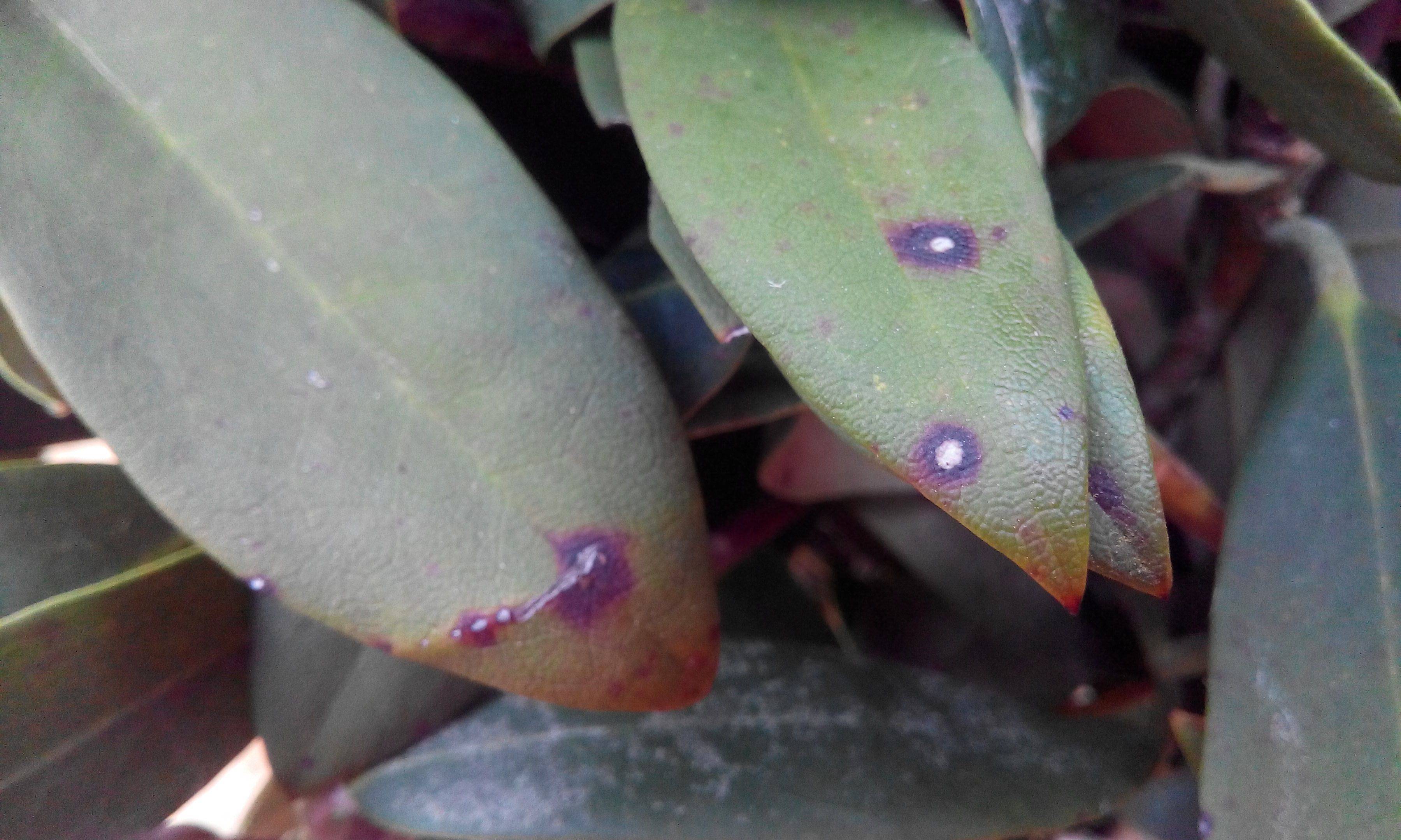 Пожълтяването на листата и появата на петна по нея могат да бъдат причинени от гъбични заболявания. Засегнатата област бързо се разширява, в резултат на което цялата корона избледнява. Най-опасното заболяване за рододендрон е болестта на септория.