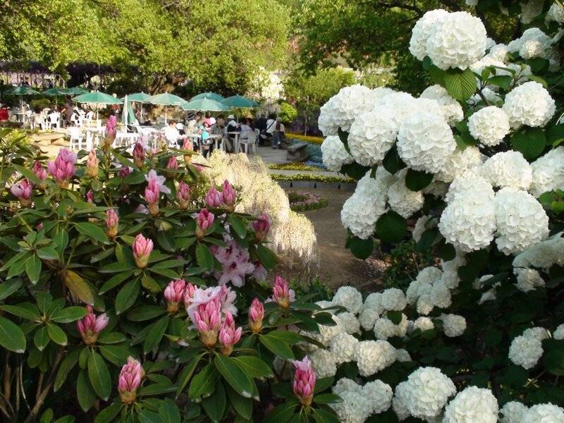 Хортензиите в една и съща цветна градина с рододендрони ще запълнят паузата в цъфтежа през втората половина на лятото и според агротехническите изисквания те напълно съвпадат с тях. Когато обаче ги поставяте заедно, трябва да е възможно свободно да се приближавате до хортензията за ежегодно подрязване.