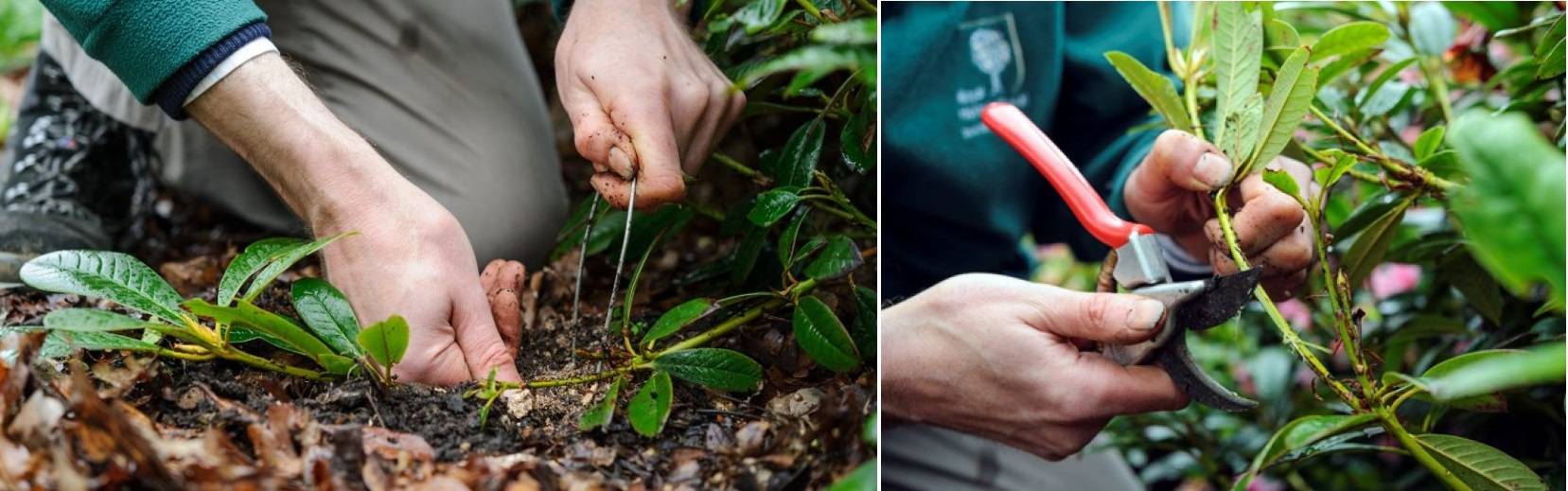 Градинските рододендрони могат да бъдат засадени чрез наслояване, резници и сеитба на семена. За да покълнат резници през пролетта или в самия край на лятото, до храста, те изкопават бразда с дълбочина 15-20 см, огъват един от клоните към него и го поръсват със земя. За да ускорите процеса, можете леко да повредите слоя кора на издънката, който попада в почвата. Вкореняването продължава 2 години.
