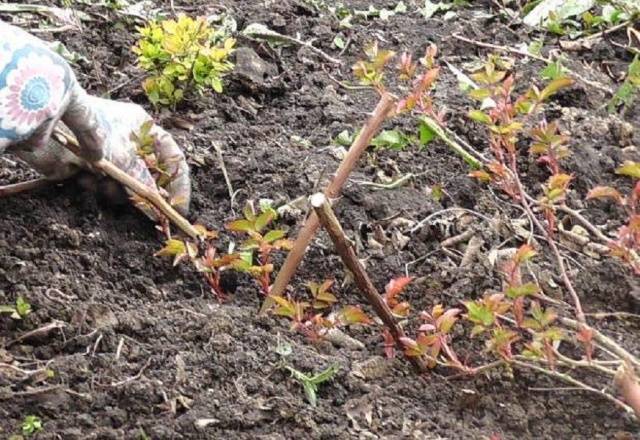 За да размножите роза близо до храст, трябва да направите дълги окопи и да поставите прави издънки в тях. Клоните трябва да бъдат фиксирани с щифтове и поръсени с пръст. При систематично поливане бързо се появяват корени. На следващата пролет издънката трябва да бъде отделена и засадена на постоянно място.