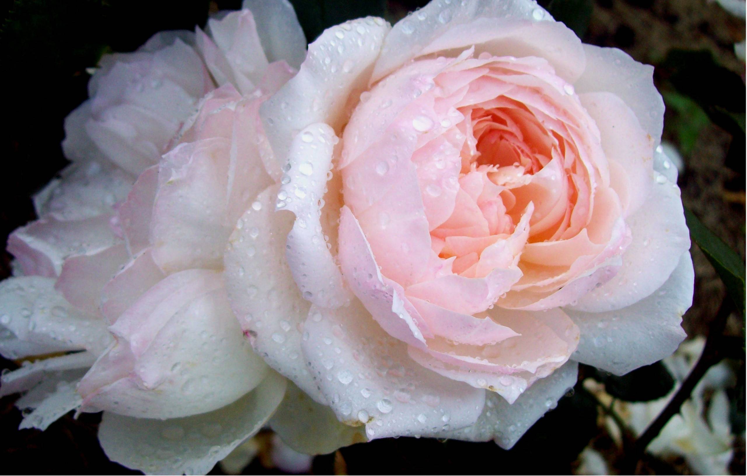 - двойни цветя в кремав цвят, избледняват до бяло на яркото слънце, всяко цвете има около 35 венчелистчета;